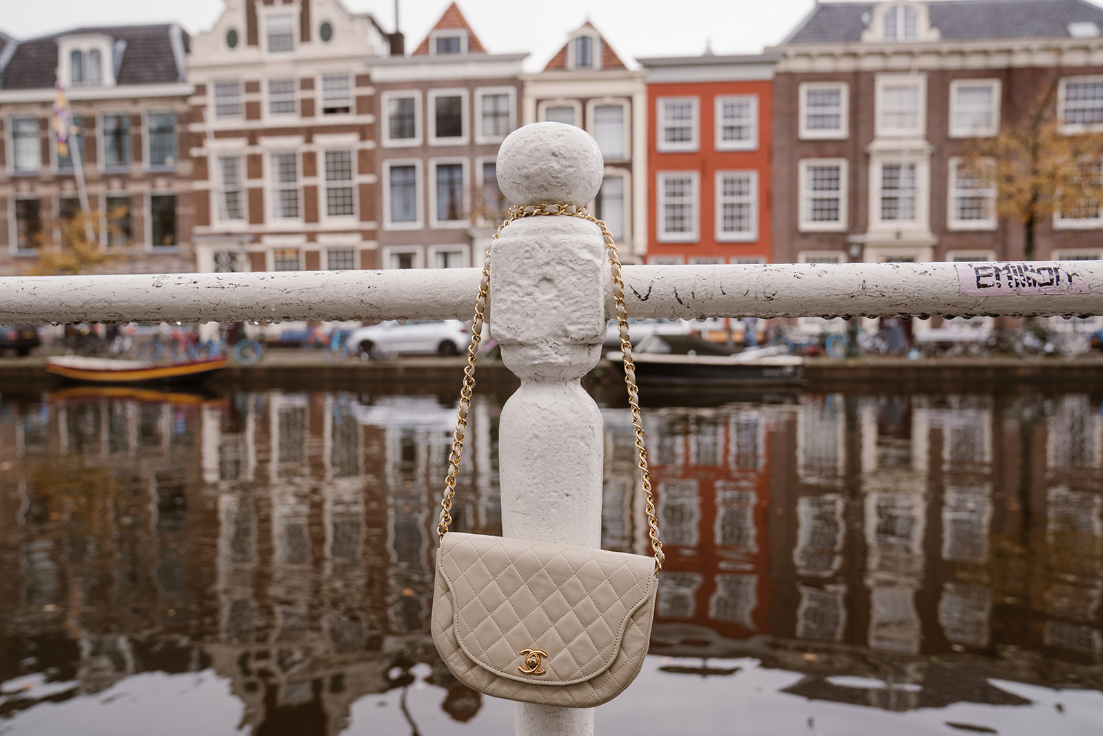 Droom je over een vintage Chanel tas? Deze Chanel mini flap tas in beige kun je bij ons huren vanaf €125