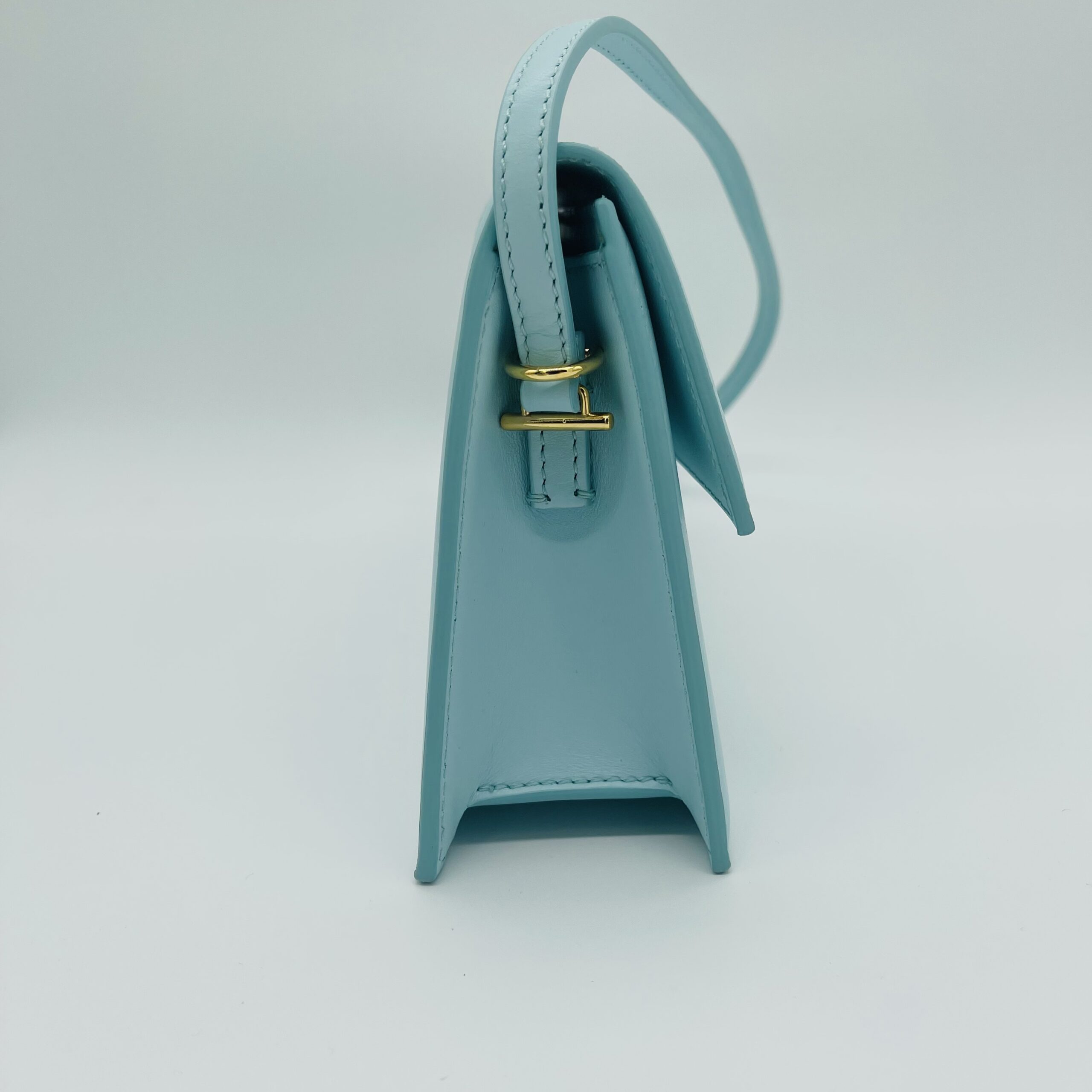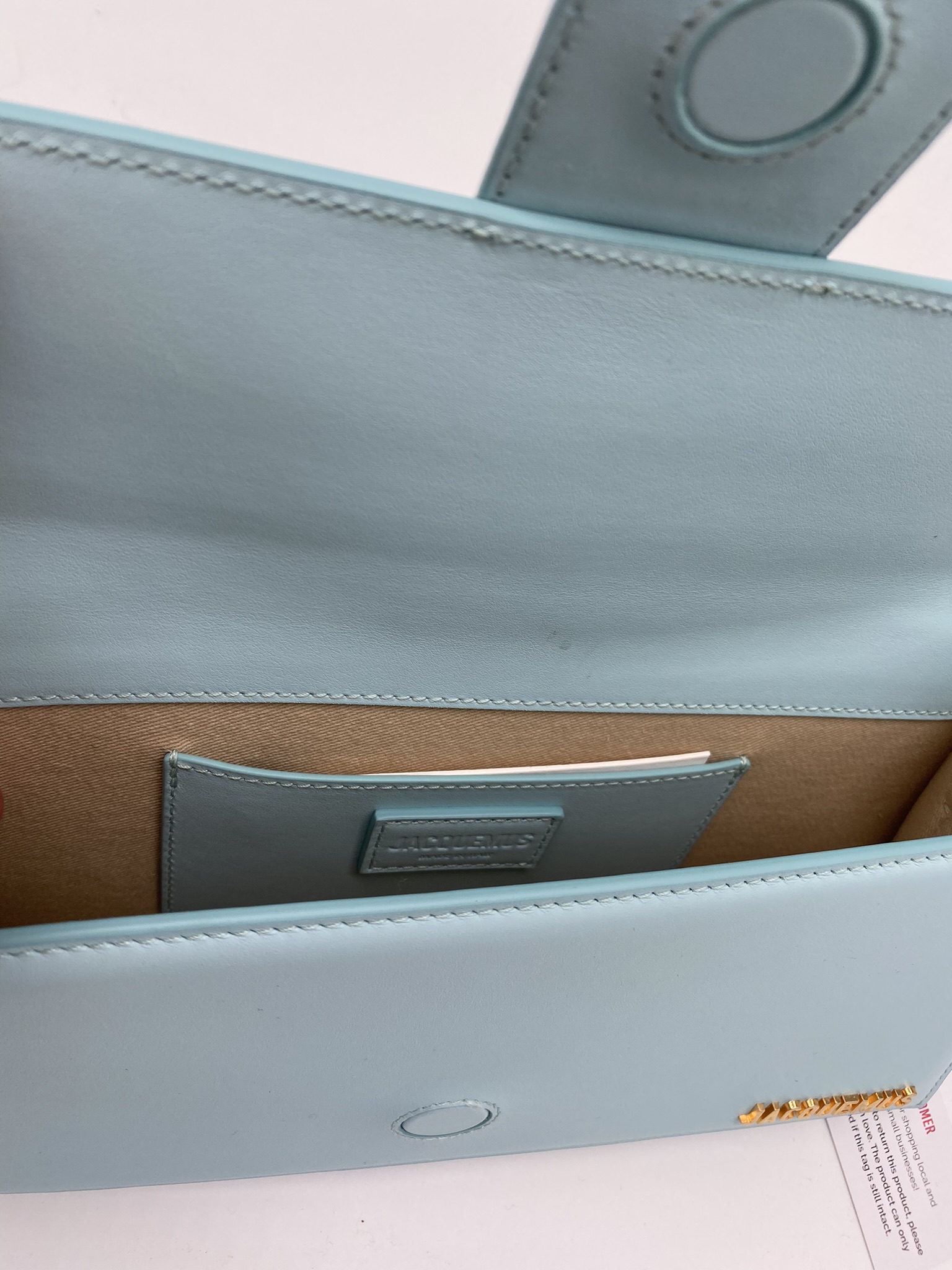 Jacquemus long bambino schoudertas in lichtblauw leer