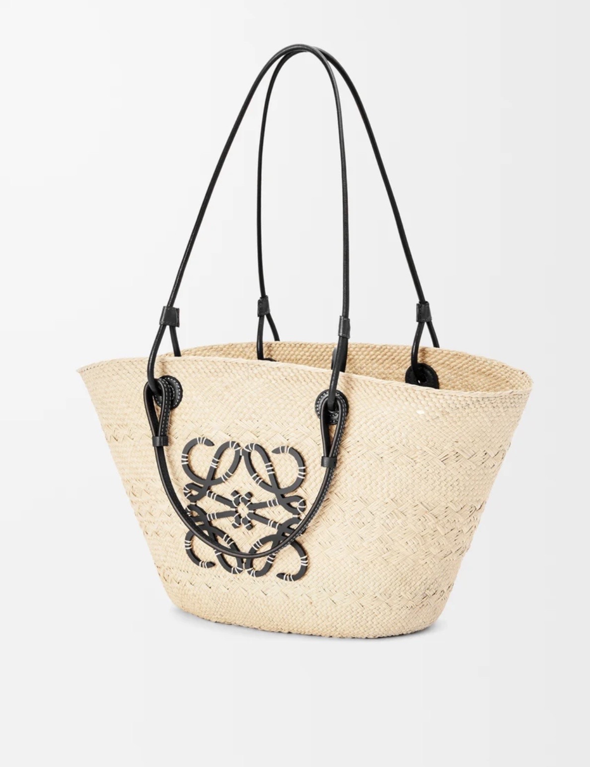 De Loewe Anagram Basket tas is de ultieme zomertas voor alle gelegenheden. Perfect voor als je op zoek bent naar een rieten designer strandtas die zowel trendy als praktisch is. De Loewe anagram basket tas is handgemaakt in Spanje van natuurlijk raffia en afgewerkt met luxe zwarte kalfsleren details. Het herkenbare Loewe logo is op de voorzijde geborduurd – een subtiele, maar stijlvolle knipoog naar het Spaanse modehuis.