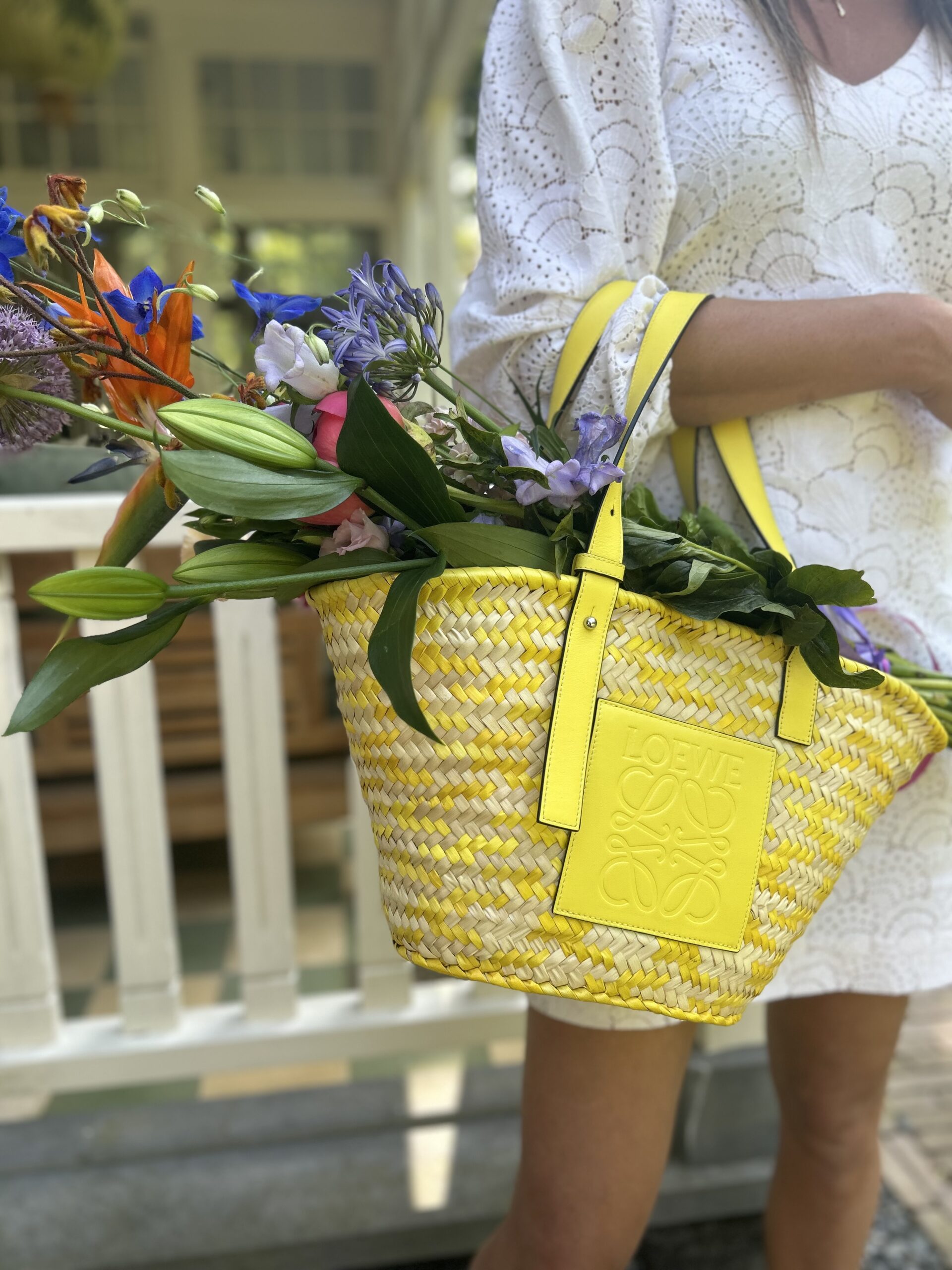 Wil je liever een neutrale Loewe huren? We hebben ook deze klassieke rieten strandtas van Loewe.