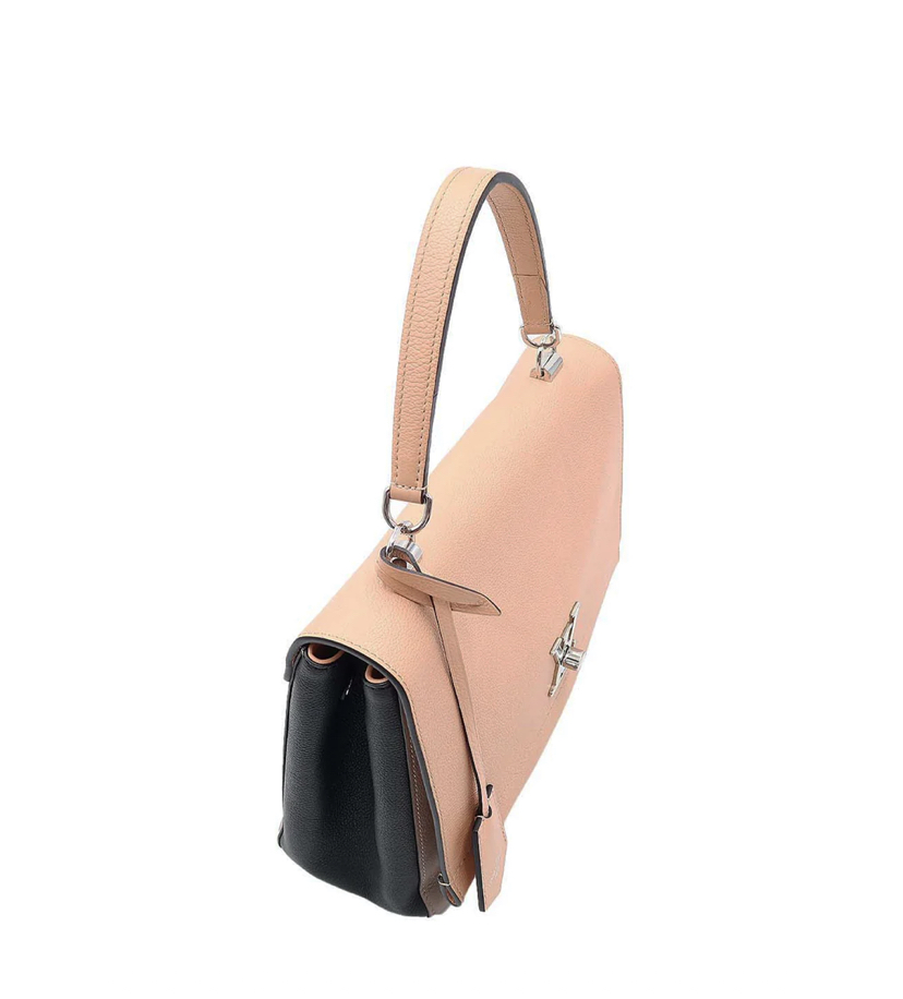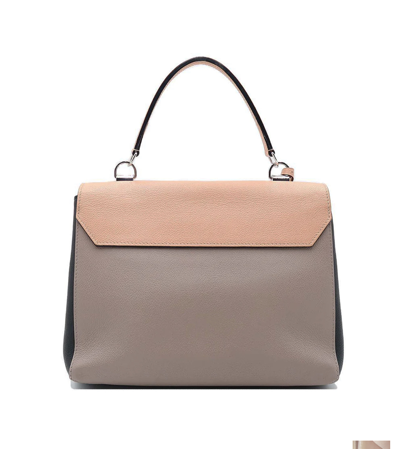 Deze kalfsleren Louis Vuitton Lock Me handtas in perzik, grijs en zwart komt uit de 2015 collectie en is een echt collectors item. Zoek je nog een nieuwe designertas voor je werk? Met de Louis Vuitton Lock Me handtas kom je altijd sophisticated voor de dag.