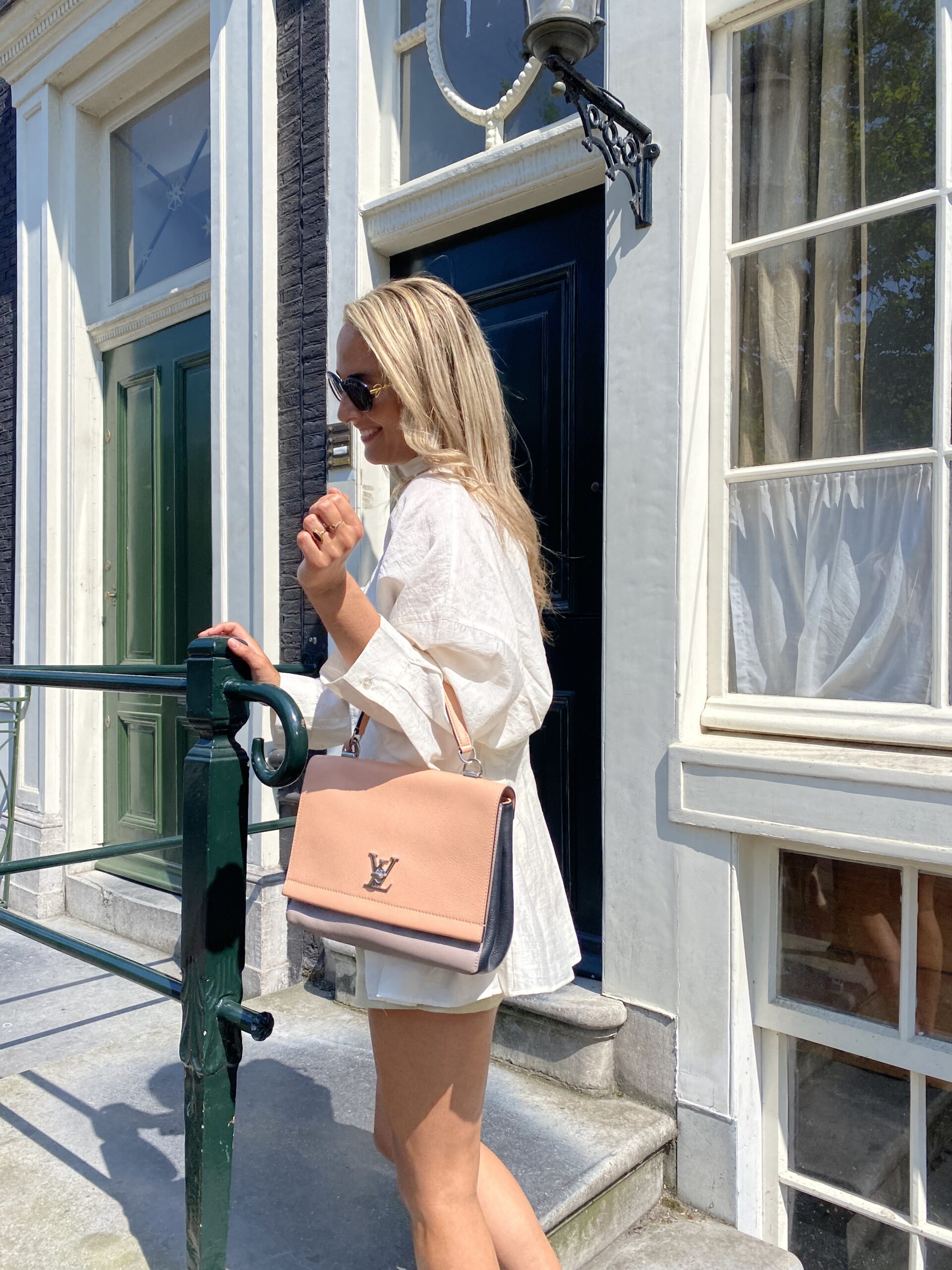 De tas heeft een top hengsel, zilveren hardware en het Louis Vuitton logo als sluiting. De prachtige neutrale kleuren van de Louis Vuitton Lock Me tas passen bij al je outfits.