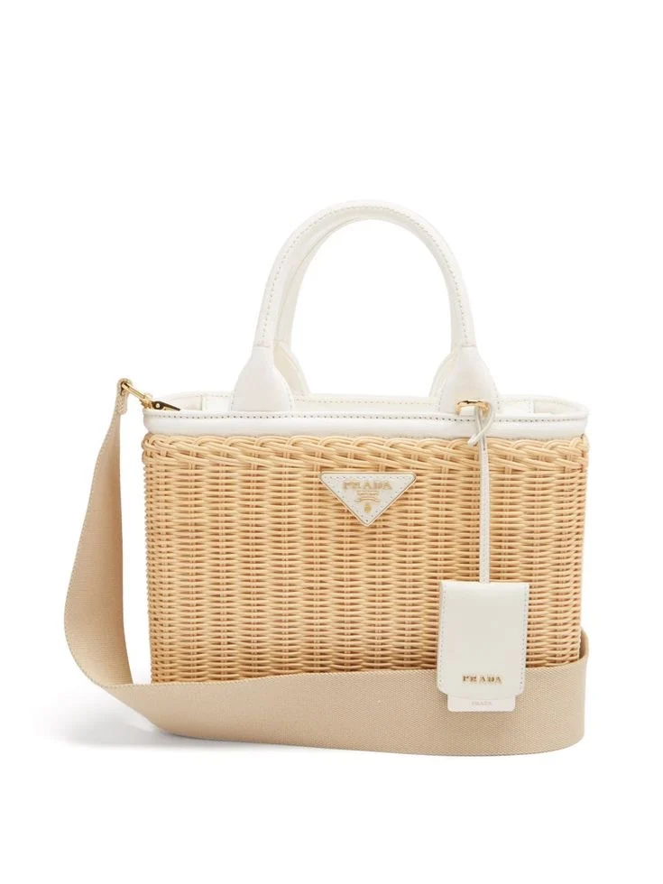 Deze prachtige Prada Wicker basket tas is overal uitverkocht, maar gelukkig huur je ‘m bij ons al vanaf €89.