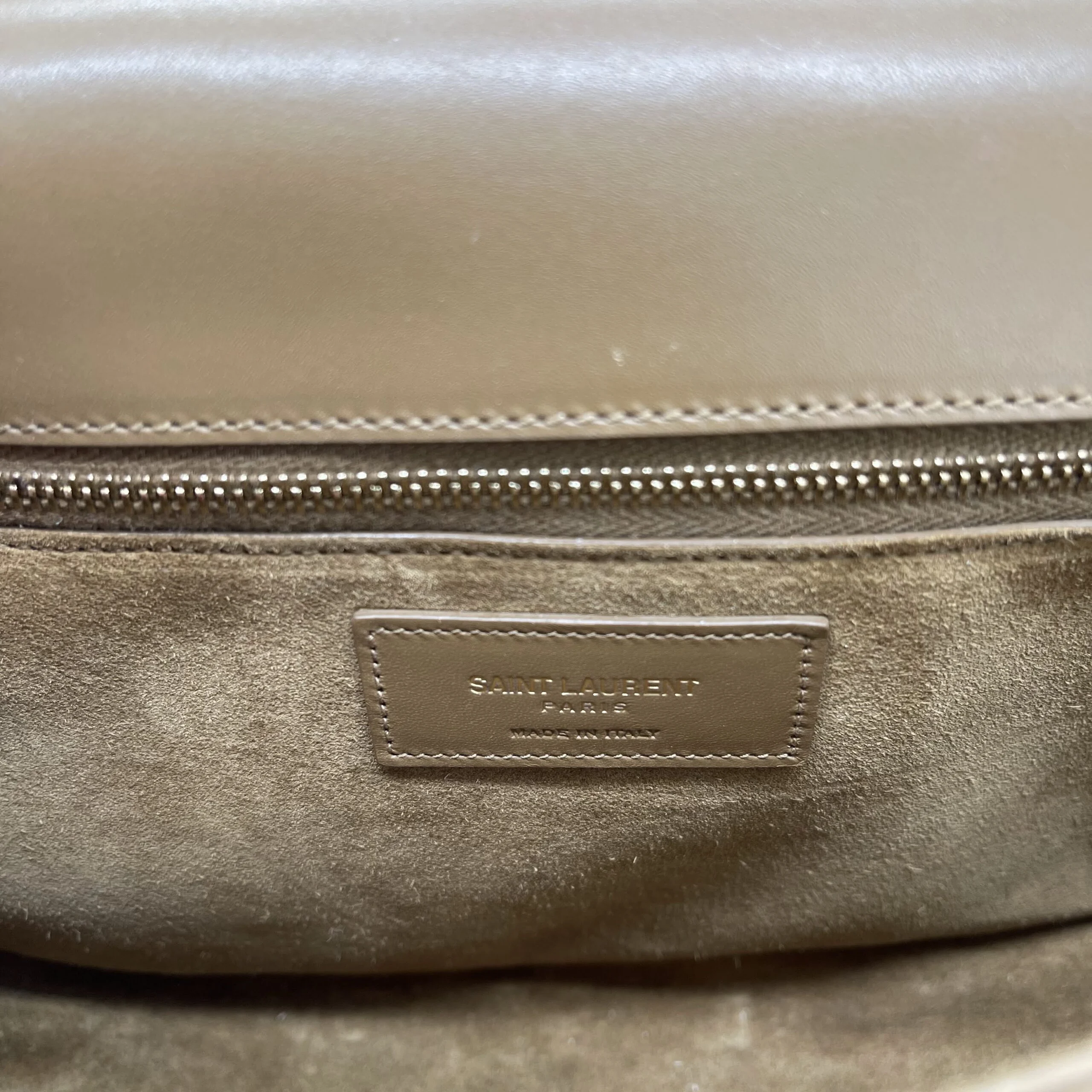 Deze Saint Laurent université tas is pre-loved en heeft gebruikssporen. De bovenkant van de tas is wat ingedeukt.